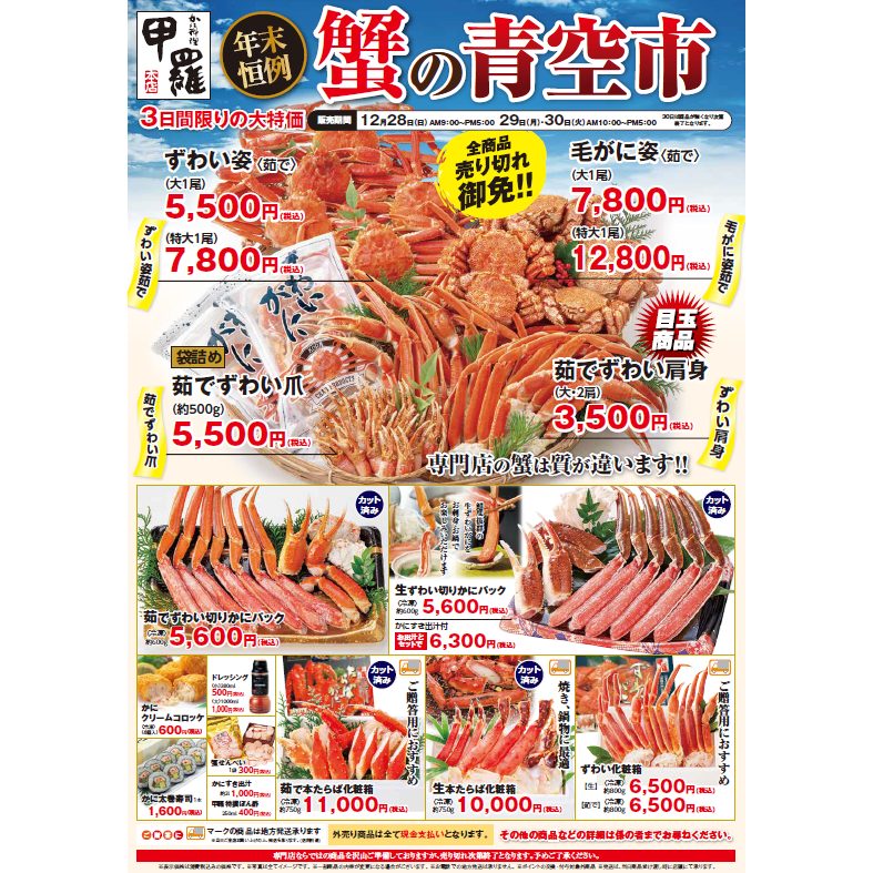 12月28日~30日までの3日間、蟹の青空市が開催されます。