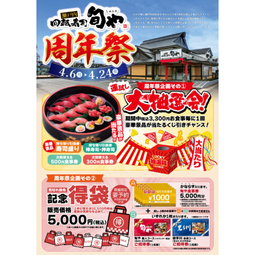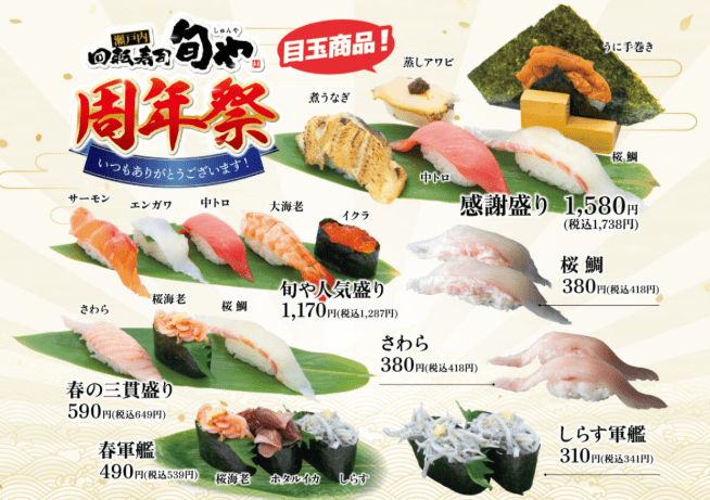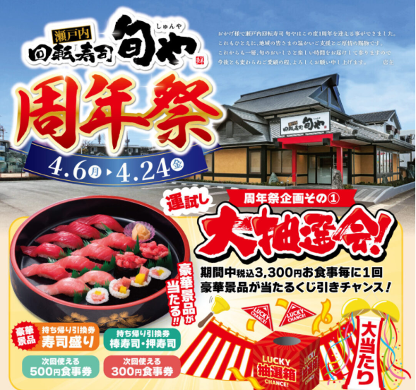 【岡山市北区】瀬戸内回転寿司 旬や 周年祭開催中!【瀬戸内回転寿司 旬や】