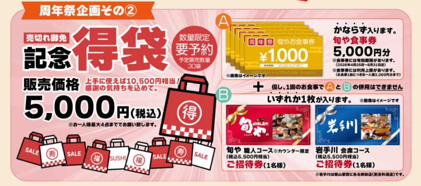 周年祭企画2:限定30袋「記念得袋」(要予約)